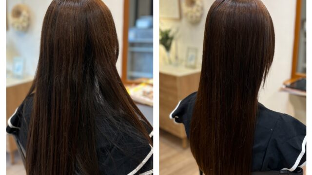 高知店のストレートエステの施術実績 【ダメージで収まらない髪が、艶々まとまる髪に】 dearskouchi 2021年5月1日 ストレートエステのお客様の事例をご紹介します。 ご来店時、繰り返しの縮毛矯正のダメージで 毛先がまとまらずお悩みのお客様。 毛先のダメージは強く、縮毛矯正をやるのは厳しい状態でした。 今回は毛先をトリートメントで保護して、根本(クセの部分)をしっかりと伸ばしていきました。 天然の栄養分を髪にたっぷりと入れながら施術をしていくことで、 写真のように、乾かすだけで まとまる艶々キレイな髪になりました。 お客様からも「感動です」とお喜びいただけました^ ^