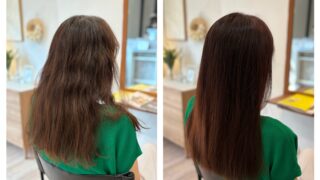 高知店のカラーエステの施術実績 【広がりまとまらない髪が、艶々綺麗な髪に】 dearskouchi 2025年9月20日 皆様こんにちは^ ^ ディアーズです♪ 本日はカラーエステのお客様の事例をご紹介します。 ご来店時、パサつき、広がりがお悩みでご相談いただいたお客様。 原因は、クセとダメージでした。 当店のカラーエステは、天然の栄養成分でできたトリートメントを 髪の毛にたっぷりといれながら施術していくことで 髪の毛への負担を最小限に抑え、髪内部から潤いを与えていきます。 写真のように、乾かすだけで 艶々まとまる綺麗な髪になりました。 お客様からも「艶々〜」とお喜びいただけました♪