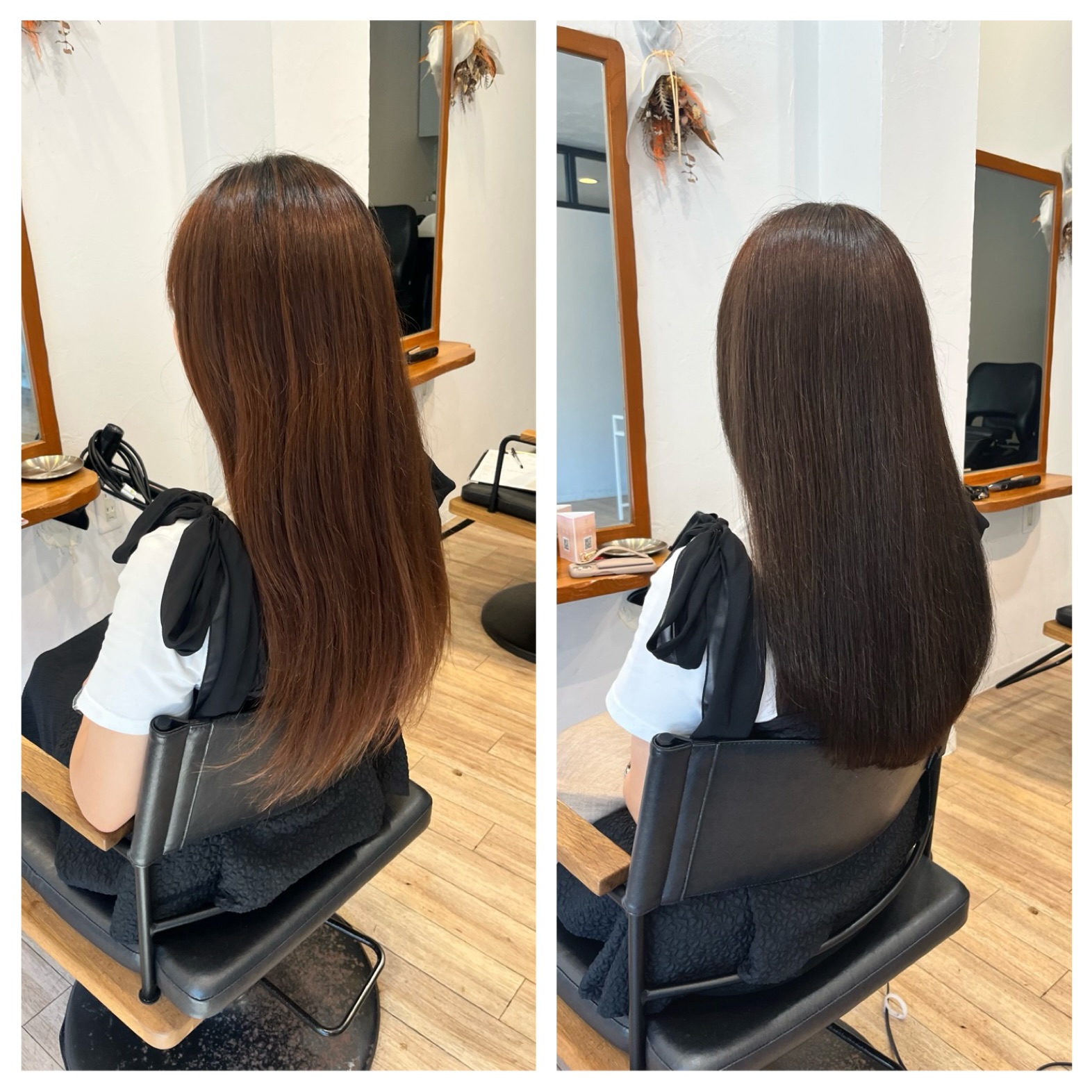 高知店のカラーエステの施術実績 【パサつき広がる髪が、艶々まとまる髪に】 dearskouchi 2025年10月2日 皆様こんにちは^ ^ ディアーズです♪ 本日はカラーエステのお客様の事例をご紹介します。 ご来店時、パサつき、広がりがお悩みでご相談いただいたお客様。 原因は、クセとダメージでした。 当店のカラーエステは、天然の栄養成分でできたトリートメントを 髪の毛にたっぷりといれながら施術していくことで 髪の毛への負担を最小限に抑え、髪内部から潤いを与えていきます。 写真のように、乾かすだけで 艶々まとまる綺麗な髪になりました。 お客様からも「艶々〜」とお喜びいただけました♪