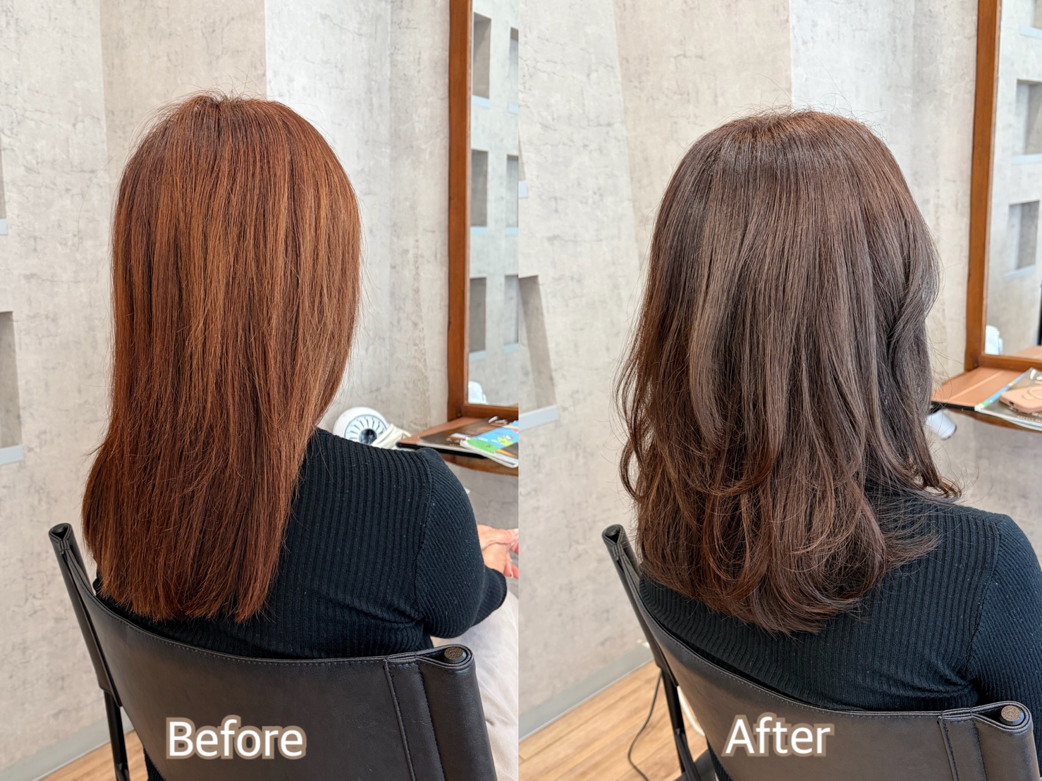 高知店のカラーエステの施術実績 【褪色し、パサつく髪が、艶々まとまる髪に】 dearskouchi 2025年10月31日 皆様こんにちは^ ^ ディアーズです♪ 本日はカラーエステのお客様の事例をご紹介します。 ご来店時、ダメージ、パサつきがお悩みでご相談いただいたお客様。 原因は、ダメージでした。 当店のカラーエステは、天然の栄養成分でできたトリートメントを 髪の毛にたっぷりといれながら施術していくことで 髪の毛への負担を最小限に抑え、髪内部から潤いを与えていきます。 写真のように、乾かすだけで 艶々まとまる綺麗な髪になりました。 お客様からも「艶々〜」とお喜びいただけました♪