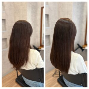 高知店のストレートエステの施術実績 【パサつき広がる髪が、艶々まとまる髪に】 dearskouchi 2025年11月5日 皆様こんにちは^ ^ ディアーズです♪ 本日はストレートエステのお客様の事例をご紹介します。 ご来店時、うねり、広がりがお悩みでご相談いただいたお客様。 原因は、クセとダメージでした。 当店のストレートエステは、天然の栄養成分でできたトリートメントを 髪の毛にたっぷりといれながら施術していくことで 髪の毛への負担を最小限に抑え、髪内部から潤いを与えていきます。 写真のように、乾かすだけで 艶々まとまる綺麗な髪になりました。 お客様からも「艶々〜」とお喜びいただけました♪