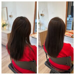 高知店のカラーエステの施術実績 【パサつき広がる髪が、艶々まとまる髪に】 dearskouchi 2025年12月20日 皆様こんにちは^ ^ ディアーズです♪ 本日はカラーエステのお客様の事例をご紹介します。 ご来店時、パサつき、広がりがお悩みでご相談いただいたお客様。 原因は、ダメージでした。 当店のカラーエステは、天然の栄養成分でできたトリートメントを 髪の毛にたっぷりといれながら施術していくことで 髪の毛への負担を最小限に抑え、髪内部から潤いを与えていきます。 写真のように、乾かすだけで 艶々まとまる綺麗な髪になりました。 お客様からも「艶々〜」とお喜びいただけました♪